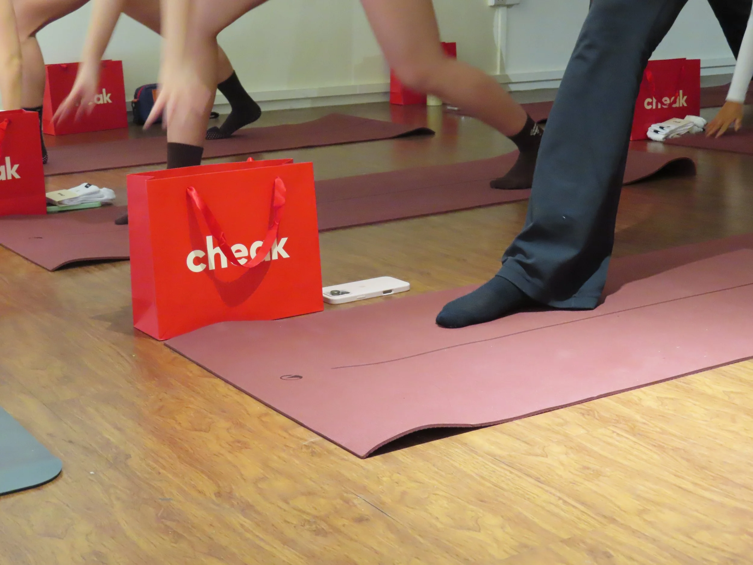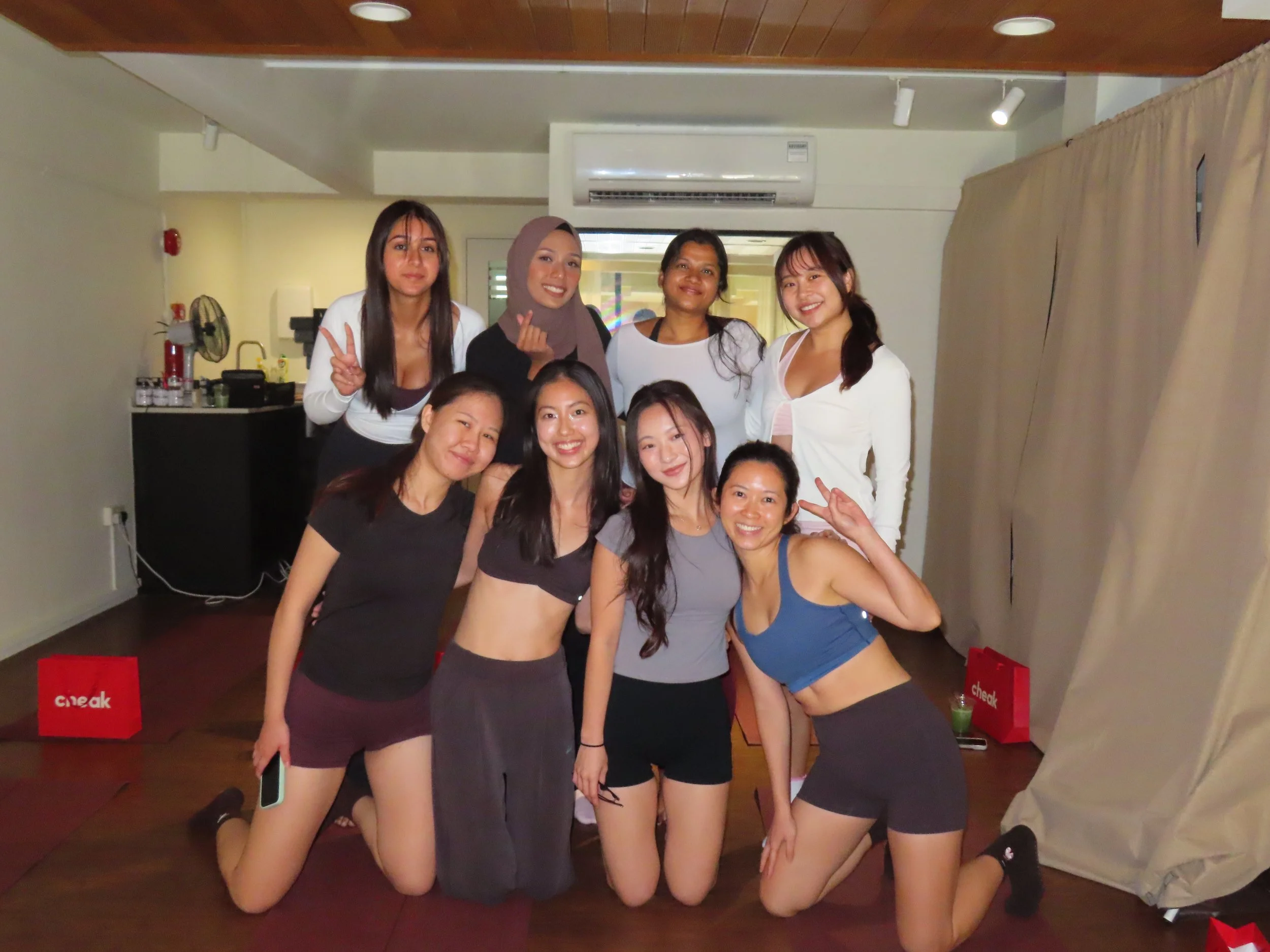 Cheak’s first community pilates event with gifted goodies and matcha.